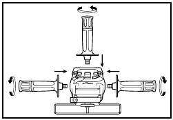 ALWAYS hold the tool firmly with one hand on rear handle and the other on the side handle. Turn the tool on and then apply the wheel or disc to the workpiece. In general, keep the edge of the wheel or disc at an angle of about 15 degrees to the workpiece surface.