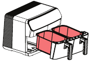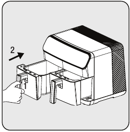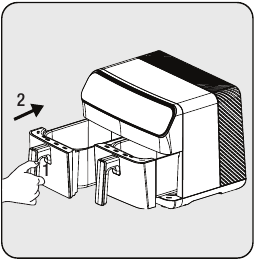 - To open the removable cooking trays (2), grasp the handles firmly; then pull the chambers out of their slots.