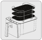 - Do not move the appliance while it is in use and the oil inside is hot.