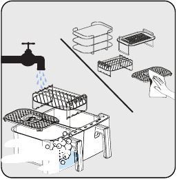- You can wash the cooking tray and the cooking accessories in warm soapy water or in the dishwasher.