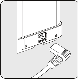 Unwind and straighten the power cord and insert the plug into the socket located on the back of the machine. Insert the other end of the power cord into a wall socket with suitable power voltage.