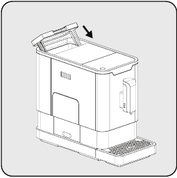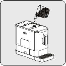 Fill the coffee bean container only with coffee beans. Grounded coffee, instant coffee, caramelized coffee and any other objects may damage the machine.