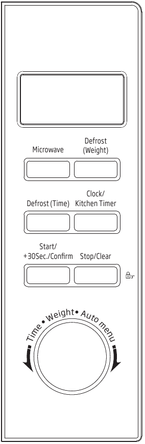 to select the defrost time. The maximum time is 95 minutes. - Press "Start/+30Sec./Confirm" to start defrost. Defrost power is P30 and cannot be changed.