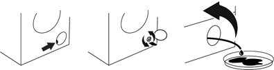 - To prevent the waste water to go back into the product again and to ensure easy drainage, do not immerse the end of the hose into the waste water or do not insert it into the drain for more than 15 cm. If it is too long, cut it short.