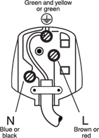 - Connect the blue (neutral) wire to the terminal in the plug marked 'N' or coloured black.