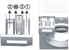 Clean the detergent drawer at regular intervals (every 4-5 washing cycles) as shown below in order to prevent accumulation of powder detergent in time.