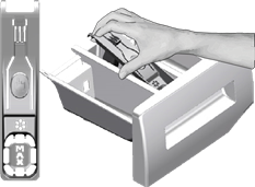 Clean the detergent drawer at regular intervals (every 4-5 washing cycles) as shown below in order to prevent accumulation of powder detergent in time.