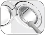 - If there is no power, loading door of the product will not open. >>>To open the loading door, open the pump filter cap and pull down the emergency handle positioned at the rear side of the said cap. See "Loading door lock"