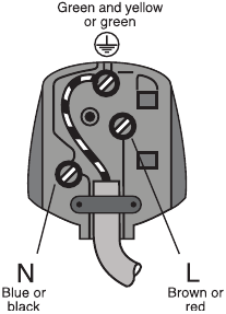 - Connect the blue (neutral) wire to the terminal in the plug marked 'N' or coloured black.