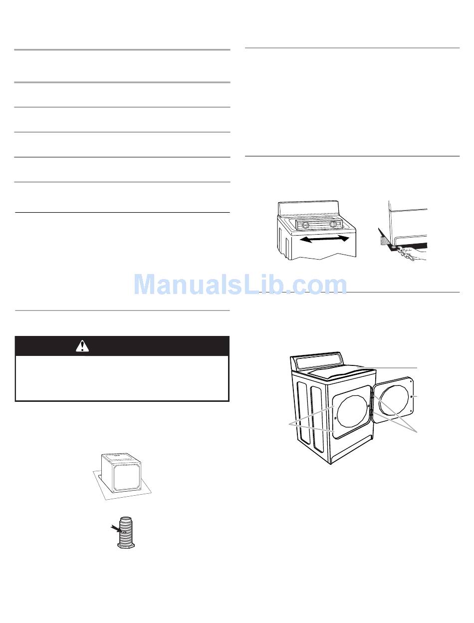Use two or more people to move and install dryer.