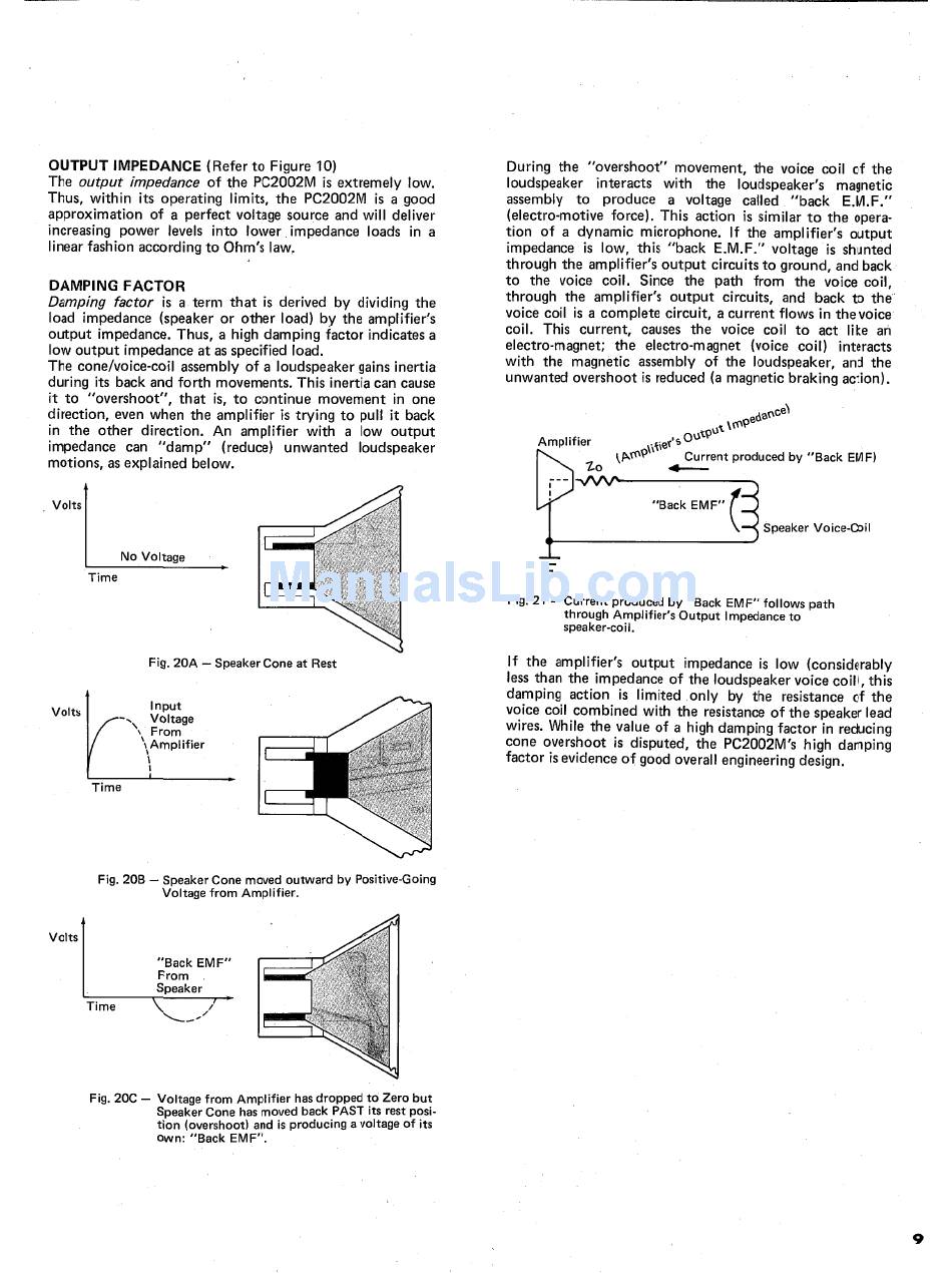 Output Impedance; Damping Factor; Speaker Cone At Rest; Speaker Cone Moved Outward By Positive-Going Voltage From Amplifier - Yamaha Pc2002M Operating Instructions Manual