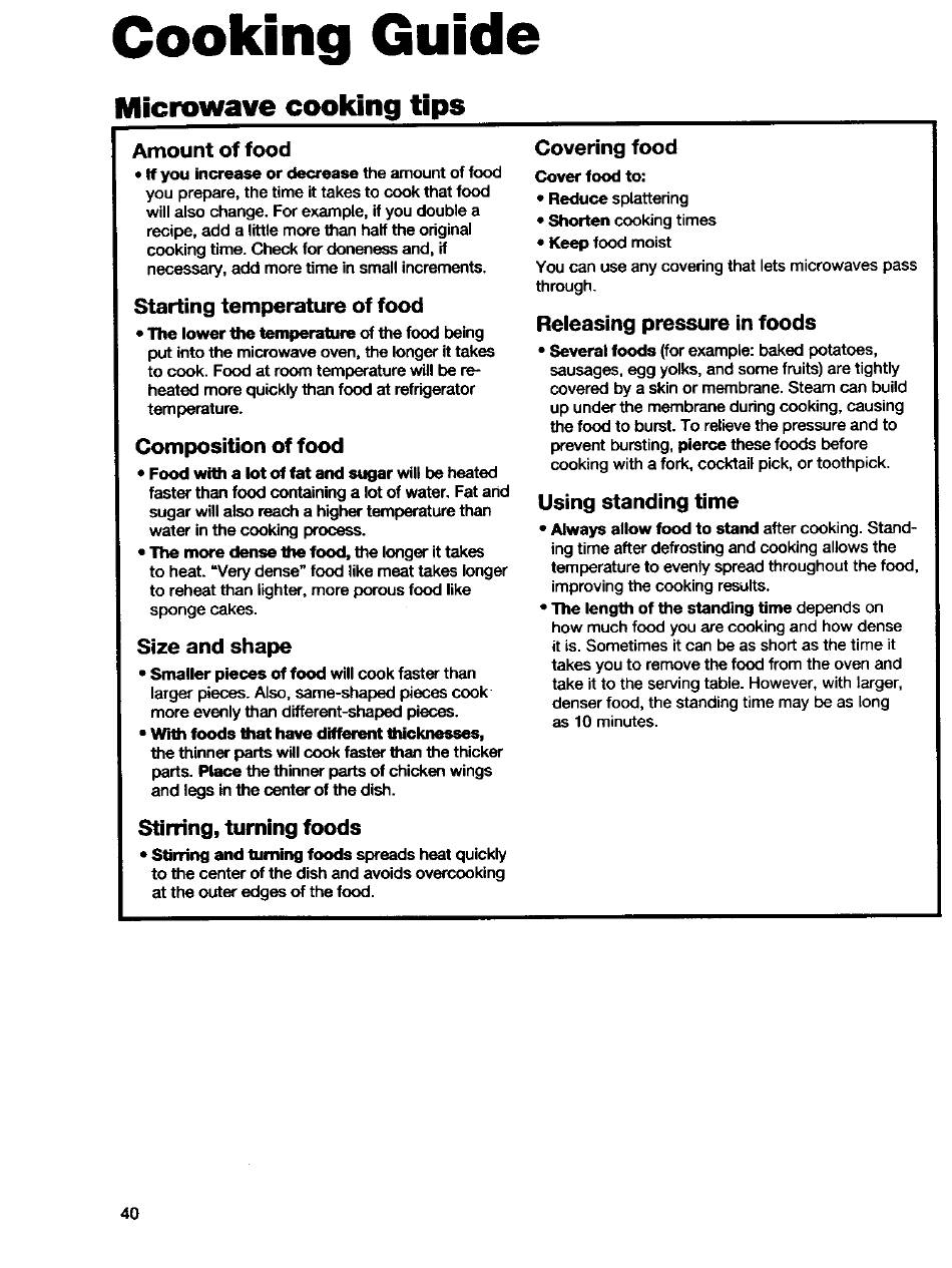 • Always allow food to stand after cooking. Stand-