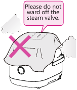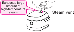 The steam vent temperature is very high. Please do not put your hands or face near the steam vent.