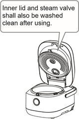 After using inner cooking pot, detachable inner lid, steam valve and serving spatula and measuring cup.