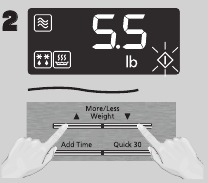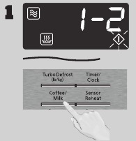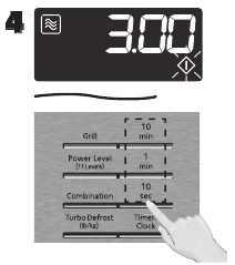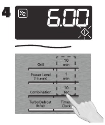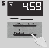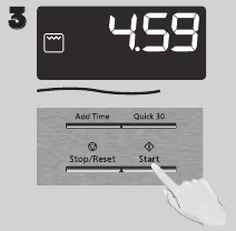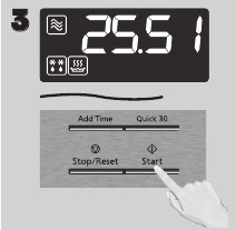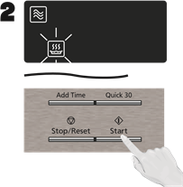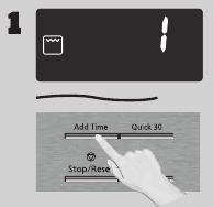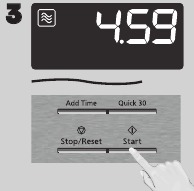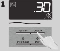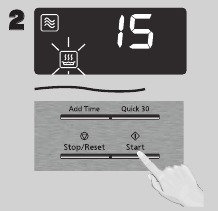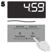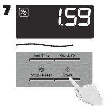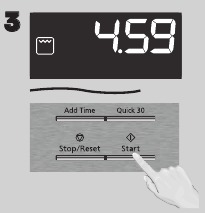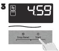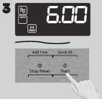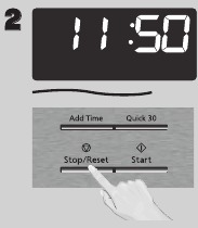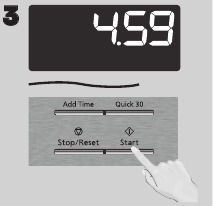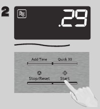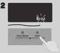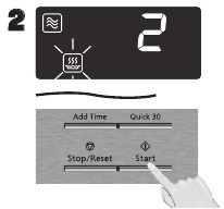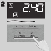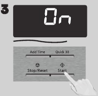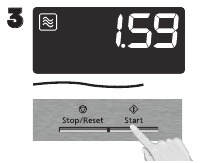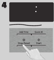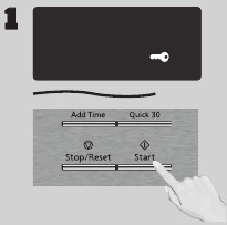 The " " appears in the display. | The CHILD SAFETY LOCK was activated by pressing Start three times; Deactivate CHILD SAFETY LOCK by pressing Stop/Reset three times. |