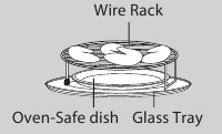 POT HOLDERS should always be used when removing items from the oven. Heat is transferred from the HOT food to the cooking container and from the container to the Glass Tray. The Glass Tray can also be very HOT after removing the cooking container from the oven. The wire rack is designed for use only in the browning mode and will be hot after use. Care in handling must be exercised.