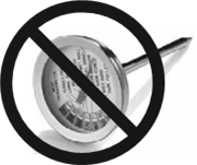 Only microwave safe thermometers can be used, NOT conventional thermometers.
