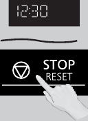 | The word "LOCK" appears in the display. | The CHILD SAFETY LOCK was activated by pressing Start three times; Deactivate CHILD SAFETY LOCK by pressing Stop/Reset three times. |