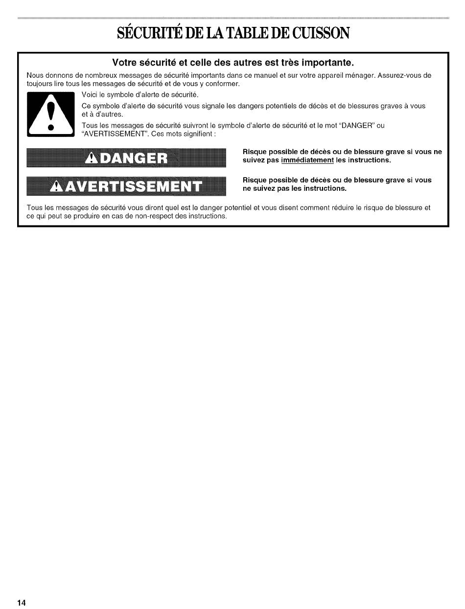 Tousles messages de securite suivront le symbole d'alerte de securite et le mot "DANGER" ou