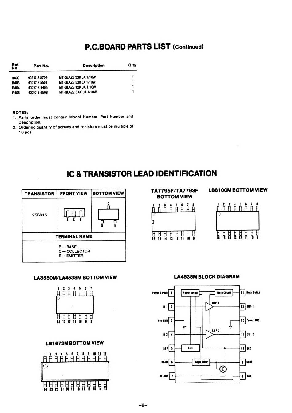 P.C.BOARD PARTS LIST (Continued)