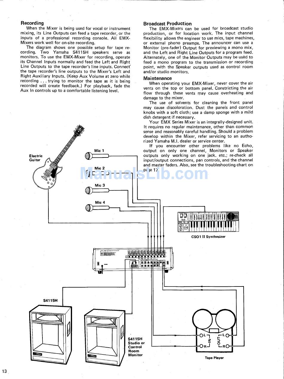 Recording; Broadcast Production; Maintenance - Yamaha Emx200 Operating Manual