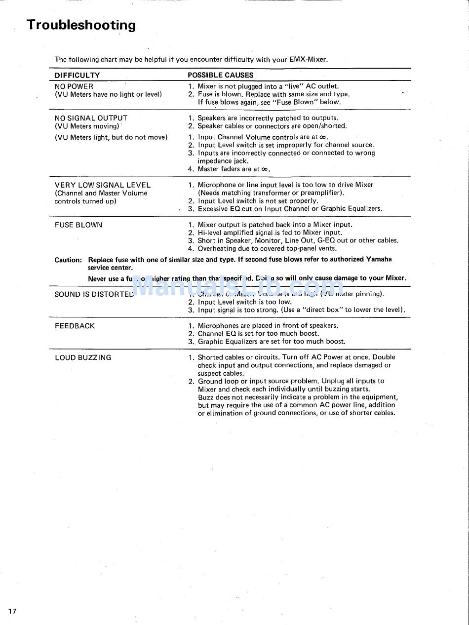 Troubleshooting - Yamaha Emx200 Operating Manual