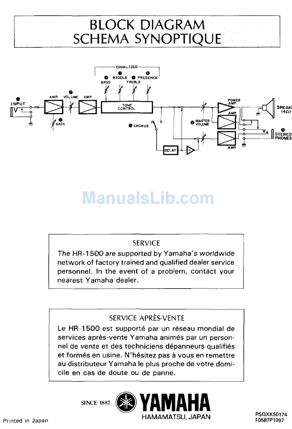 Block Diagram; Service - Yamaha Hr-1500 Owner's Manual