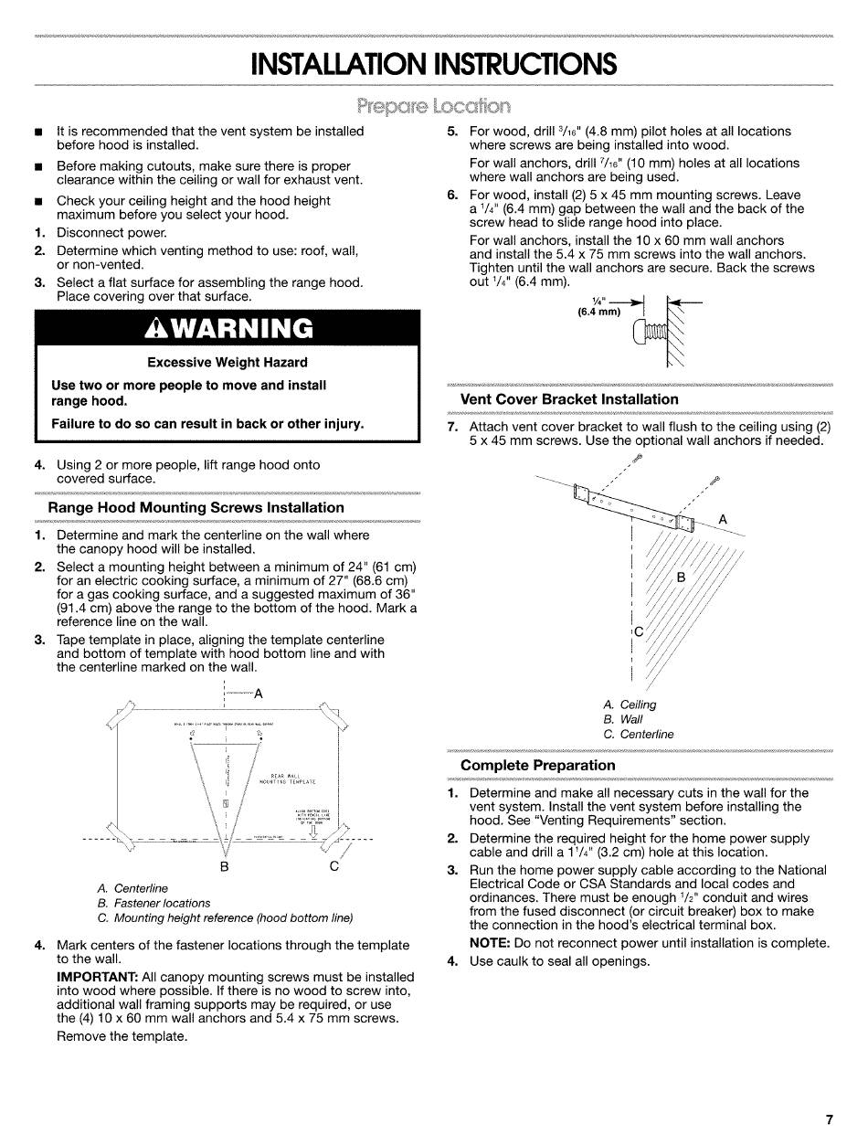 (91.4 cm) above the range to the bottom of the hood. Mark a