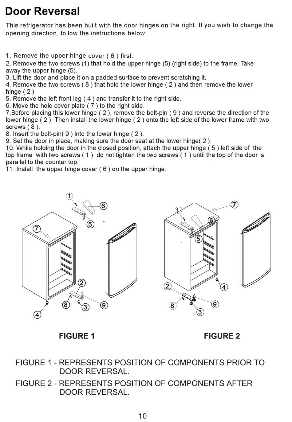 This refrigerator has been built with the door hinges on the right. If you wish to change the