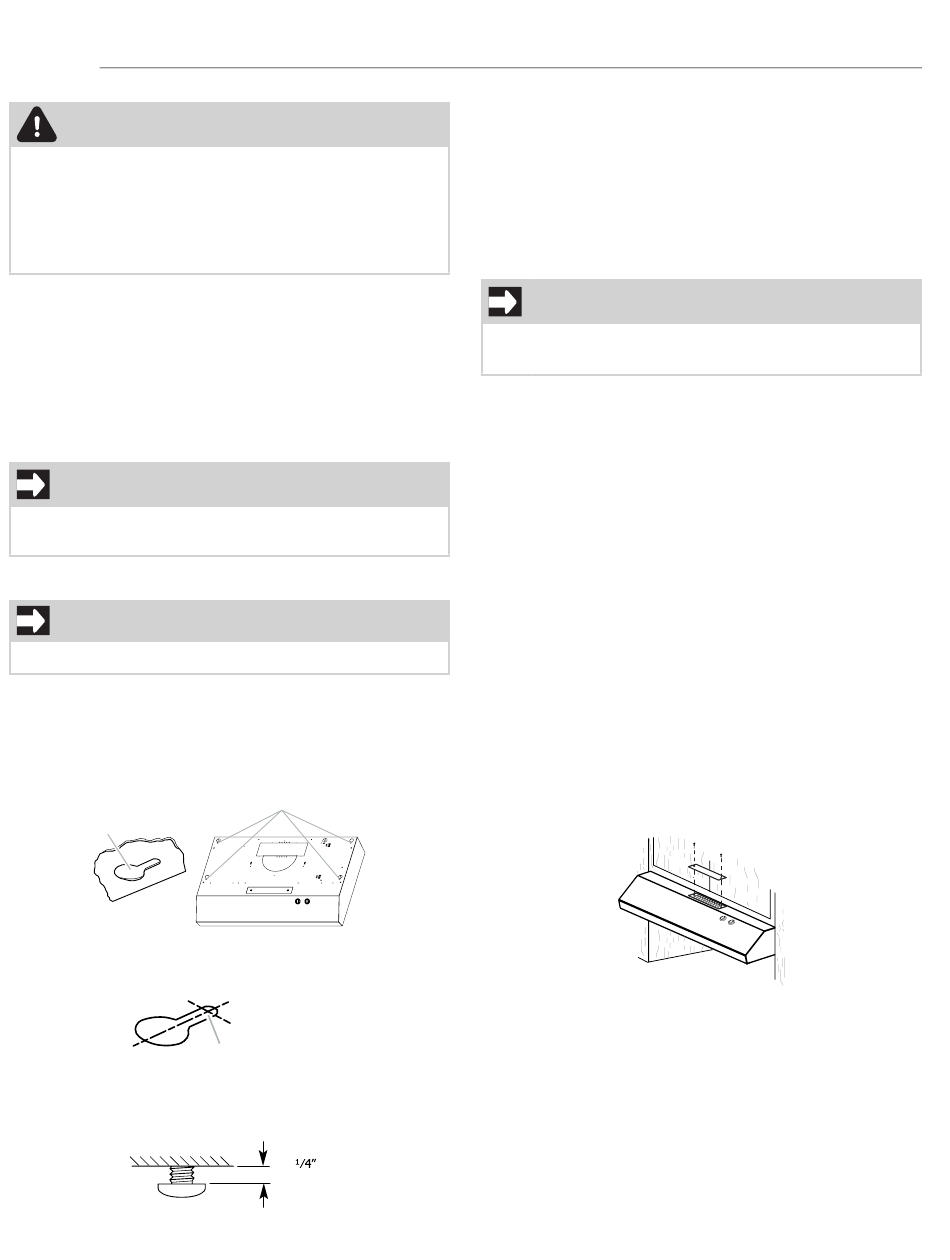 range hood (See slots dimensions on page 10).