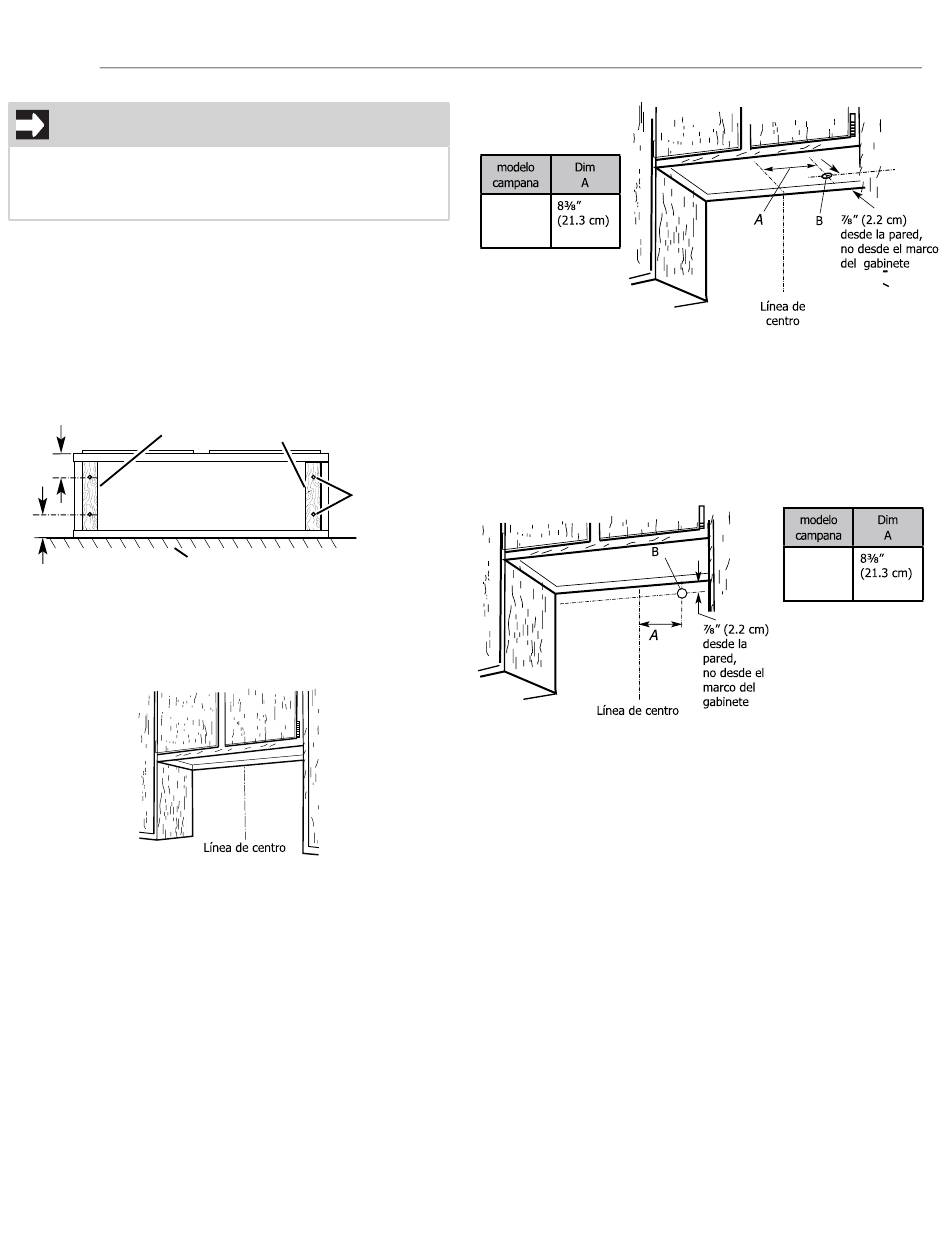 esté a ⅞" (2.2 cm) desde la pared posterior.