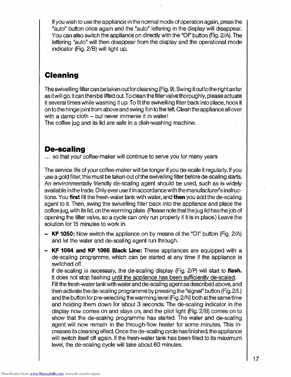 then activate the de-scaling programme by pressing the "signal" button (Fig. 2/L)