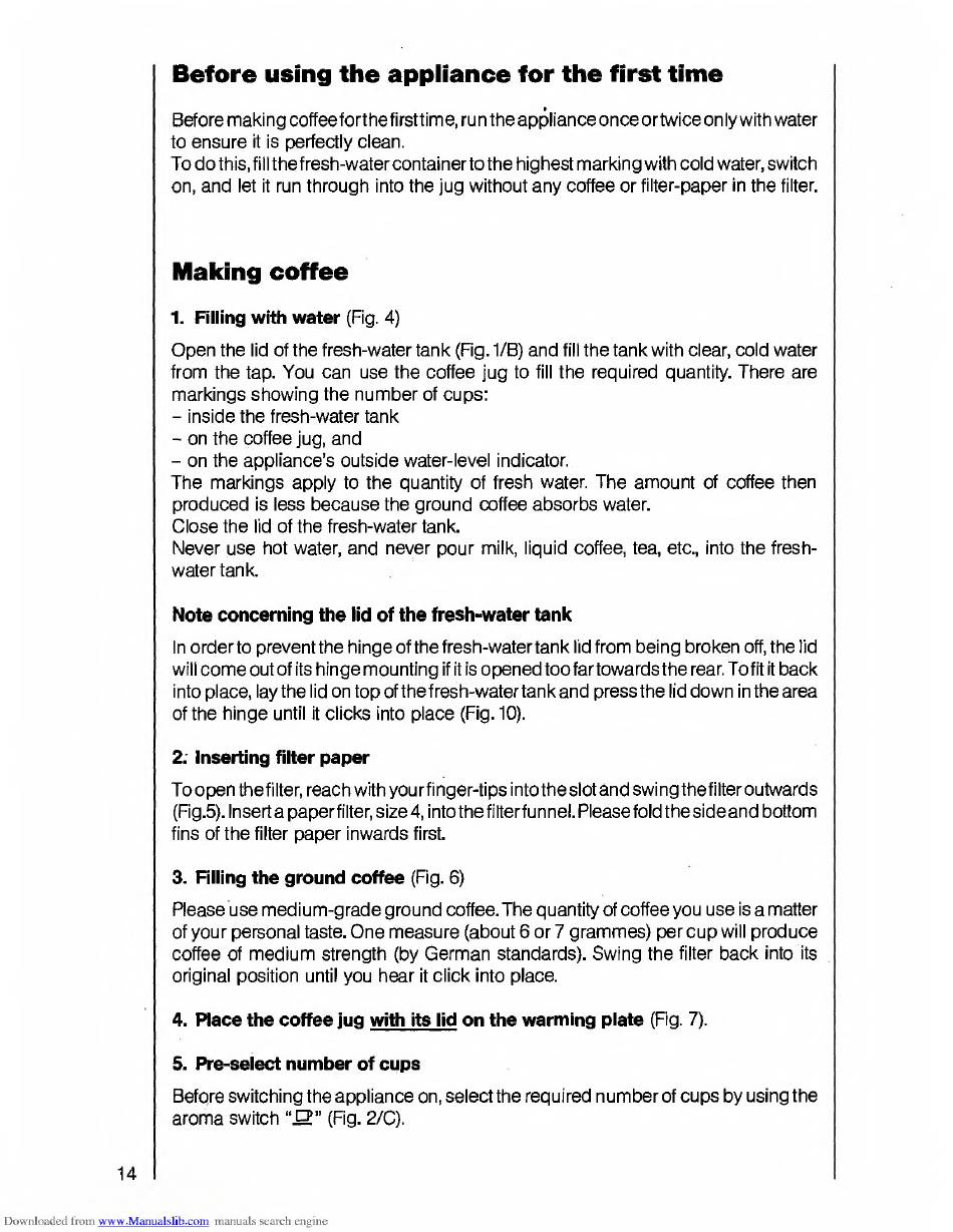 Before making coffee forthefirsttime, run the appliance once ortwice only with water