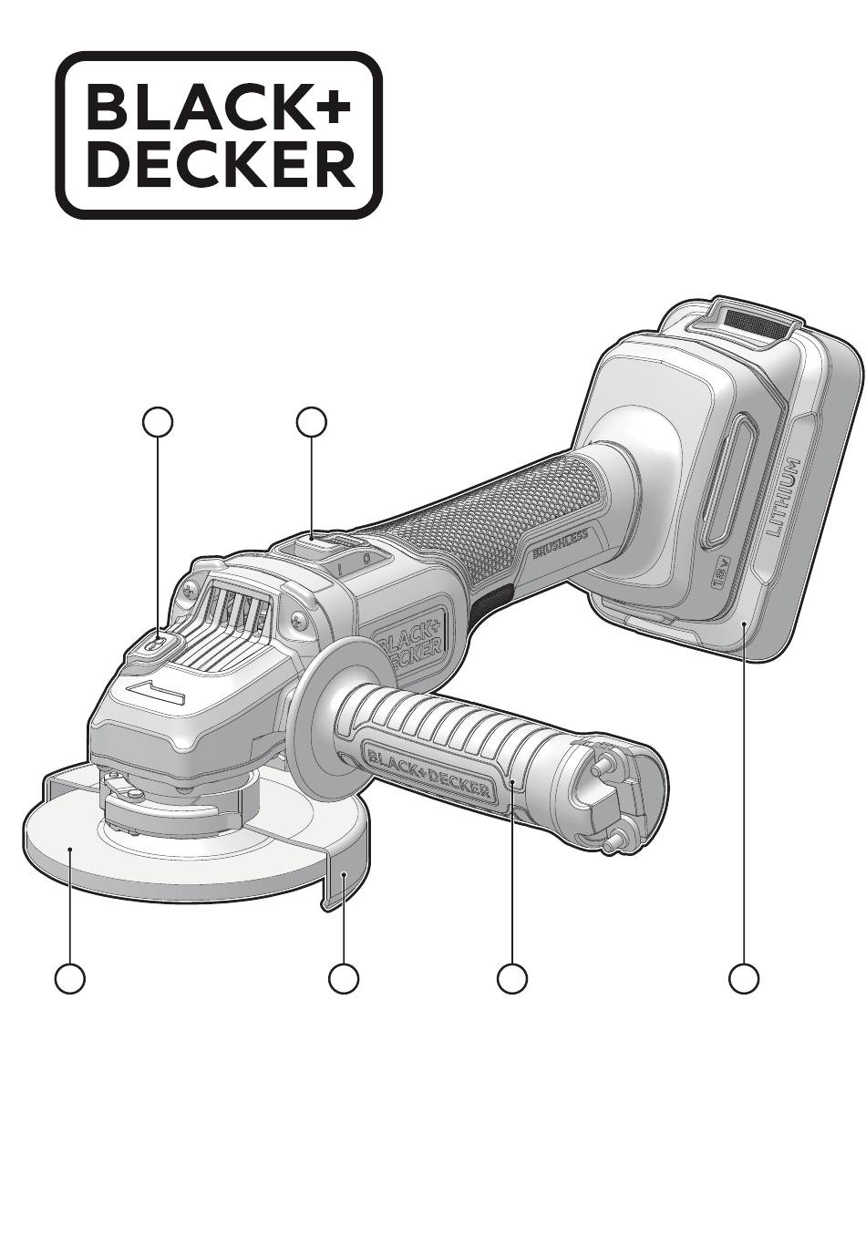 που χαράζουν ή περιέχουν διαλύτες. Προστασία του περιβάλλοντος Χωριστή συλλογή. Τα προϊόντα και οι μπαταρίες που επισημαίνονται με αυτό το σύμβολο δεν BCG6L8 Γωνιακός τροχός πρέπει να απορρίπτονται μαζί με τα κανονικά οικιακά απορρίμματα. Η BLACK+DECKER δηλώνει ότι τα προϊόντα αυτά...