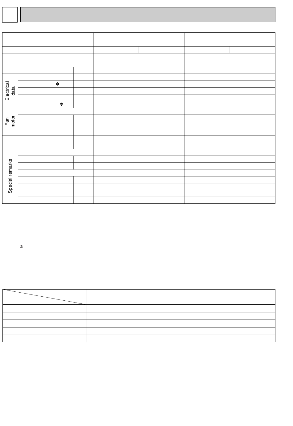 Specifications and rating conditions of main electric parts