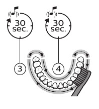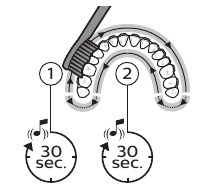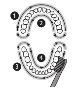 Note: Keep the center of the brush in contact with the teeth at all times.