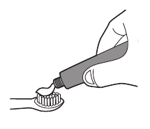 - Apply a small amount of toothpaste on the bristles.
