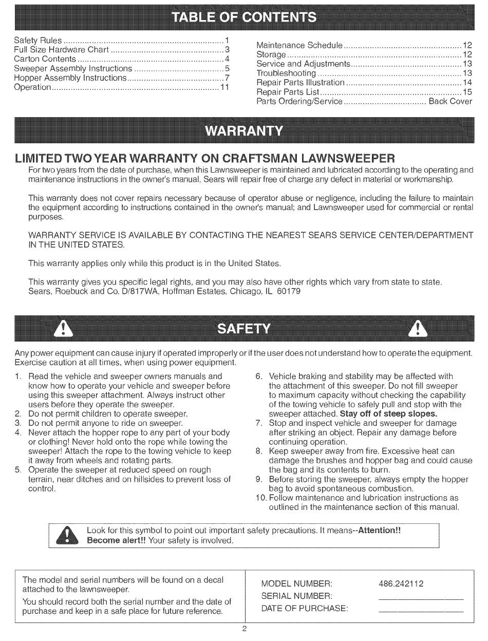 For two years from the date of purchase, when this Lawnsweeper is maintained and lubricated according to the operating and