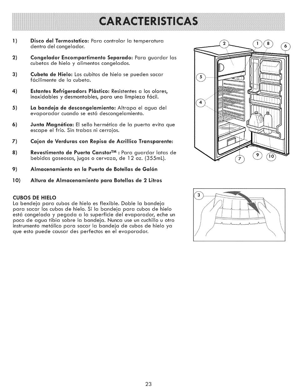 Cubeta de Hielo: Los cubitos de hielo se pueden sacar
