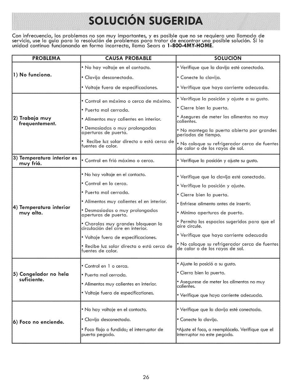 servicio, u sela guia para la resoluci6n d e problemas para tratar de encontrar u naposiblesoluci6n. Si la
