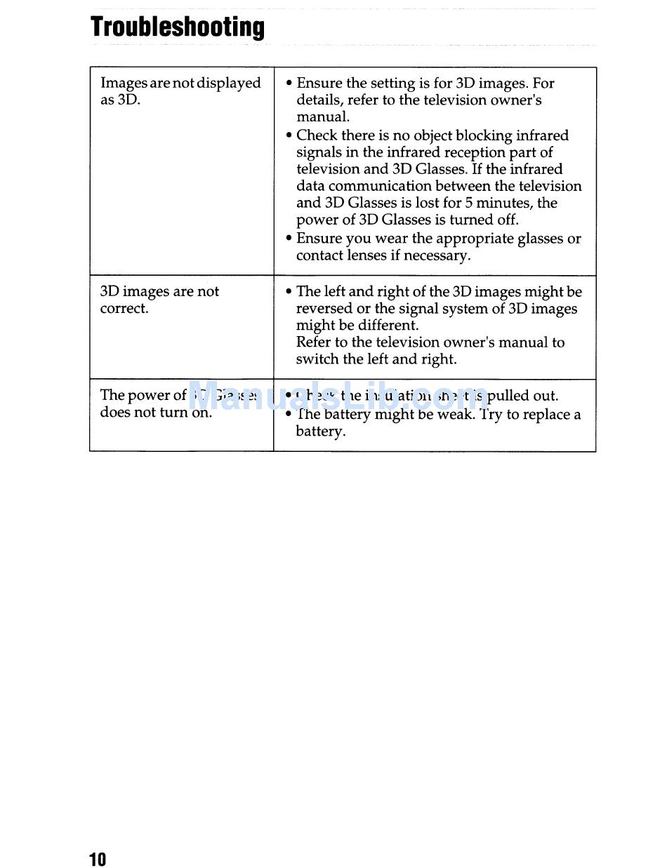 power of 3D Glasses is turned off.