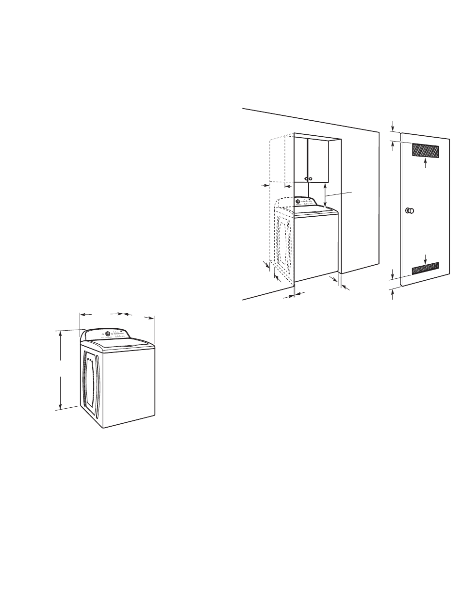 1" (25 mm) de tous les côtés de la laveuse pour réduire le