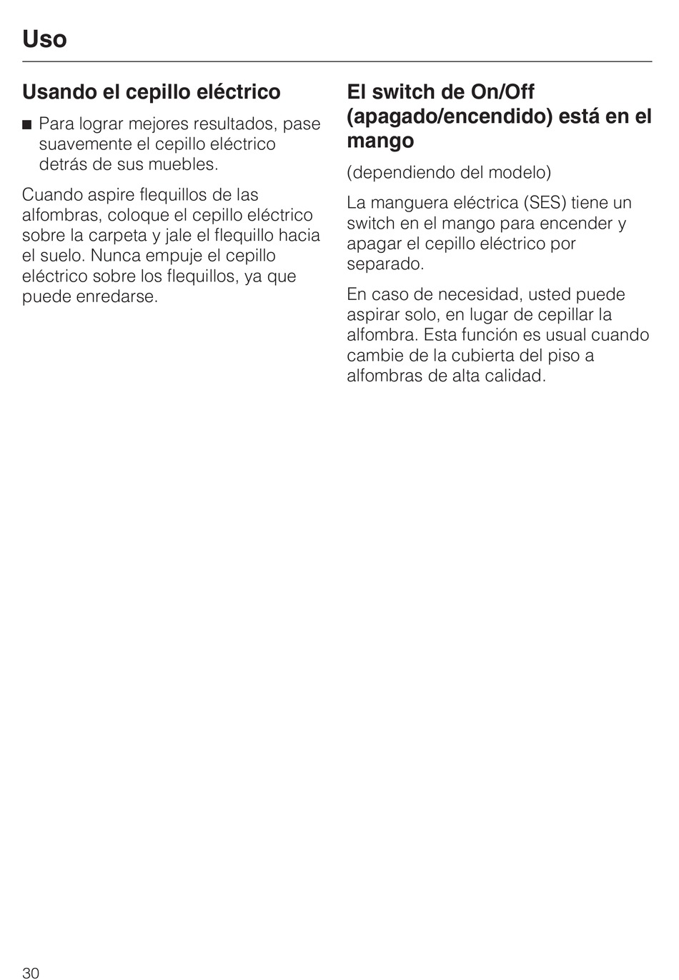 aspirar solo, en lugar de cepillar la