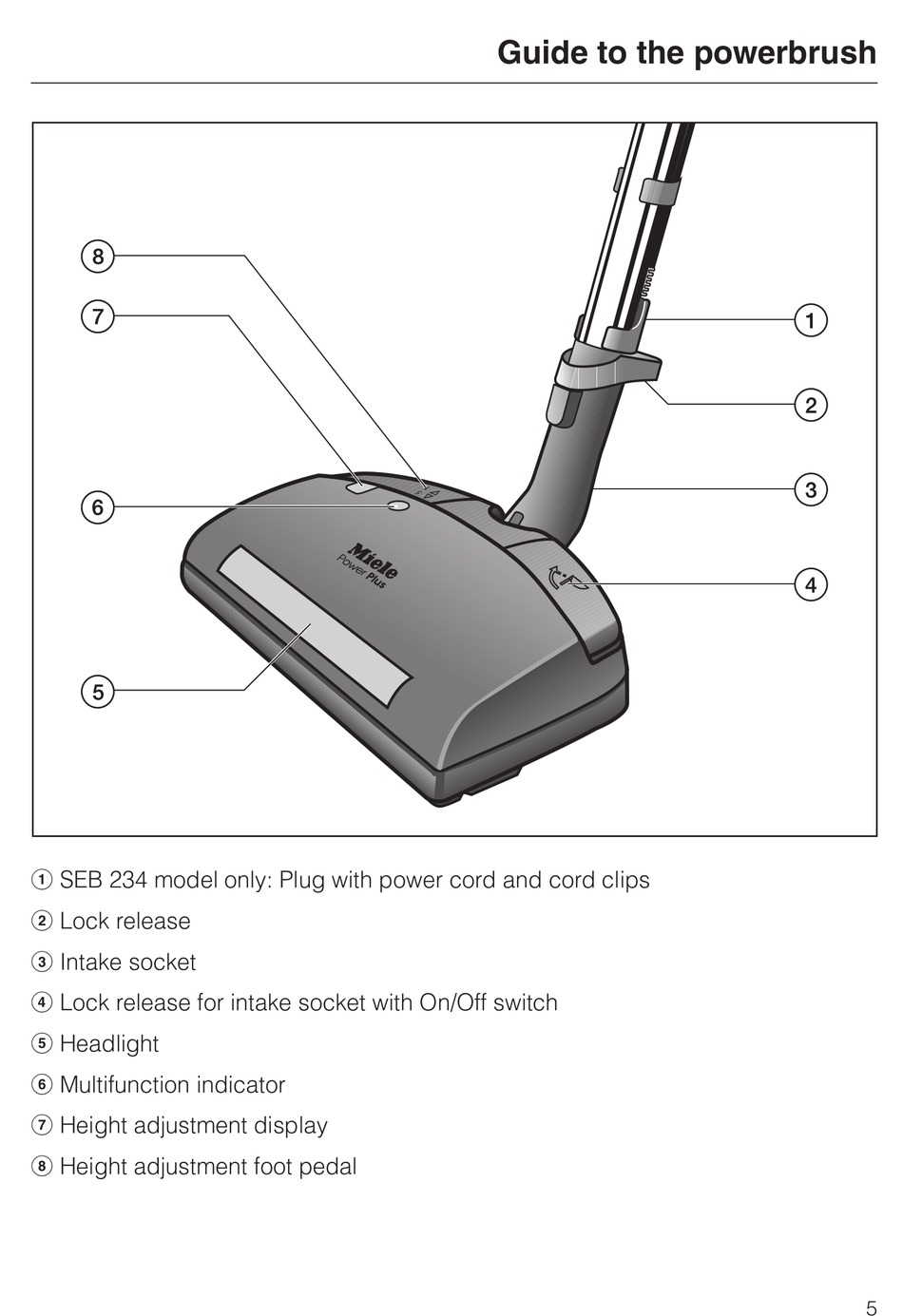 a SEB 234 model only: Plug with power cord and cord clips