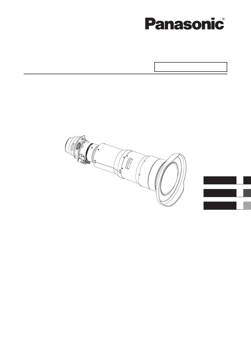 Model No. ENGLISH FRANÇAIS 日本語 Thank you for purchasing this Panasonic product. ■ To ensure correct use of this lens, please read the operating instructions supplied with the lens and the projector carefully. ■ Before using this product, be sure to read “Read this first!” ( ...