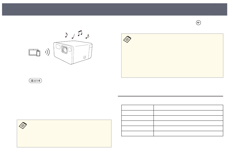 • You can also connect the projector to Bluetooth audio devices, such