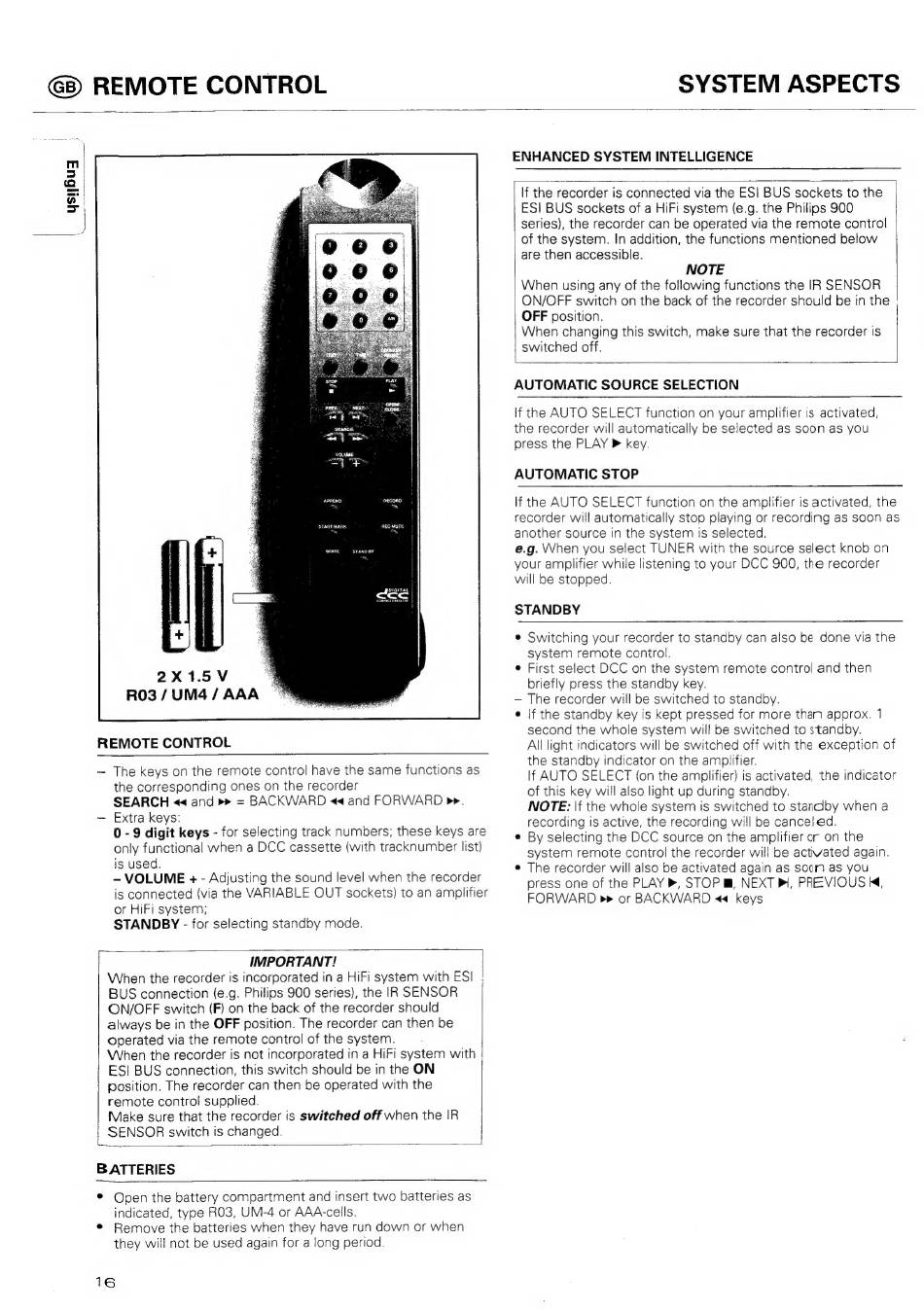 When the recorder is incorporated in a HiFi system with ESI |