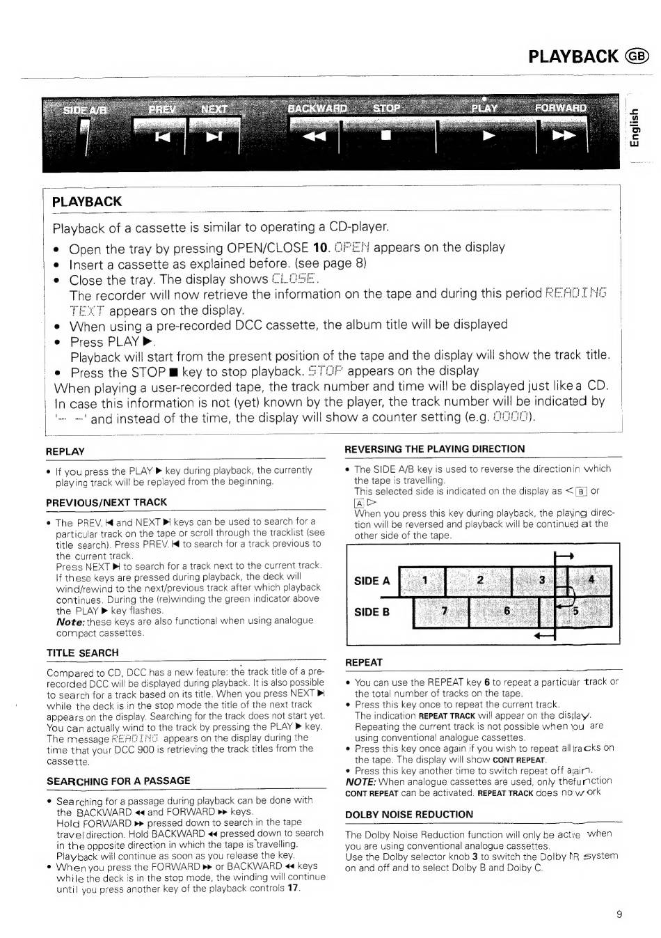 e The SIDE A/B key is used to reverse the directionin which