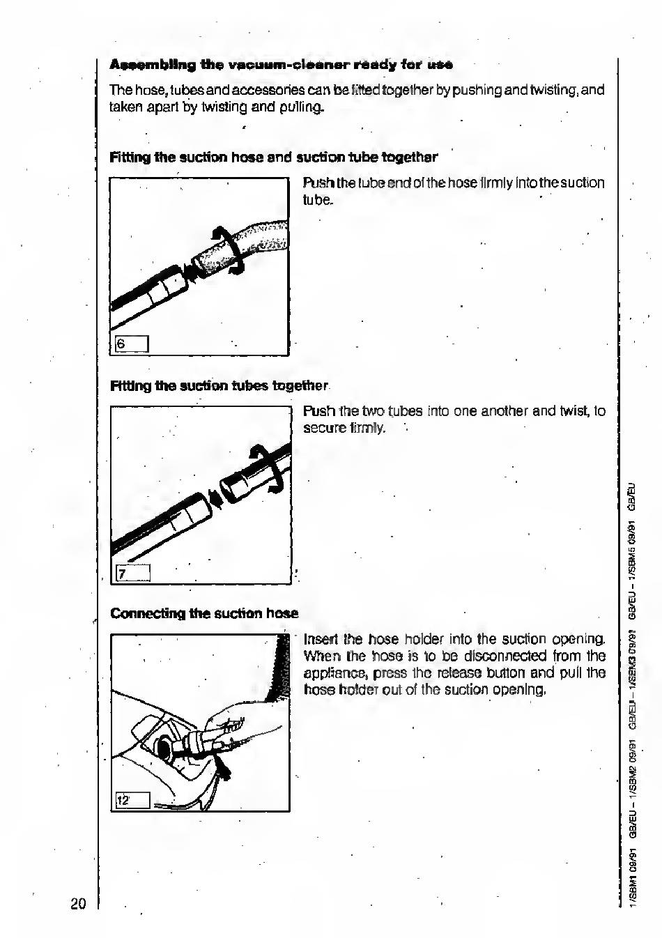 Suction Tube/Telescopic Tube; Connecting Suction Hose - Aeg Vampyr 731I Electronic Operating Instructions Manual