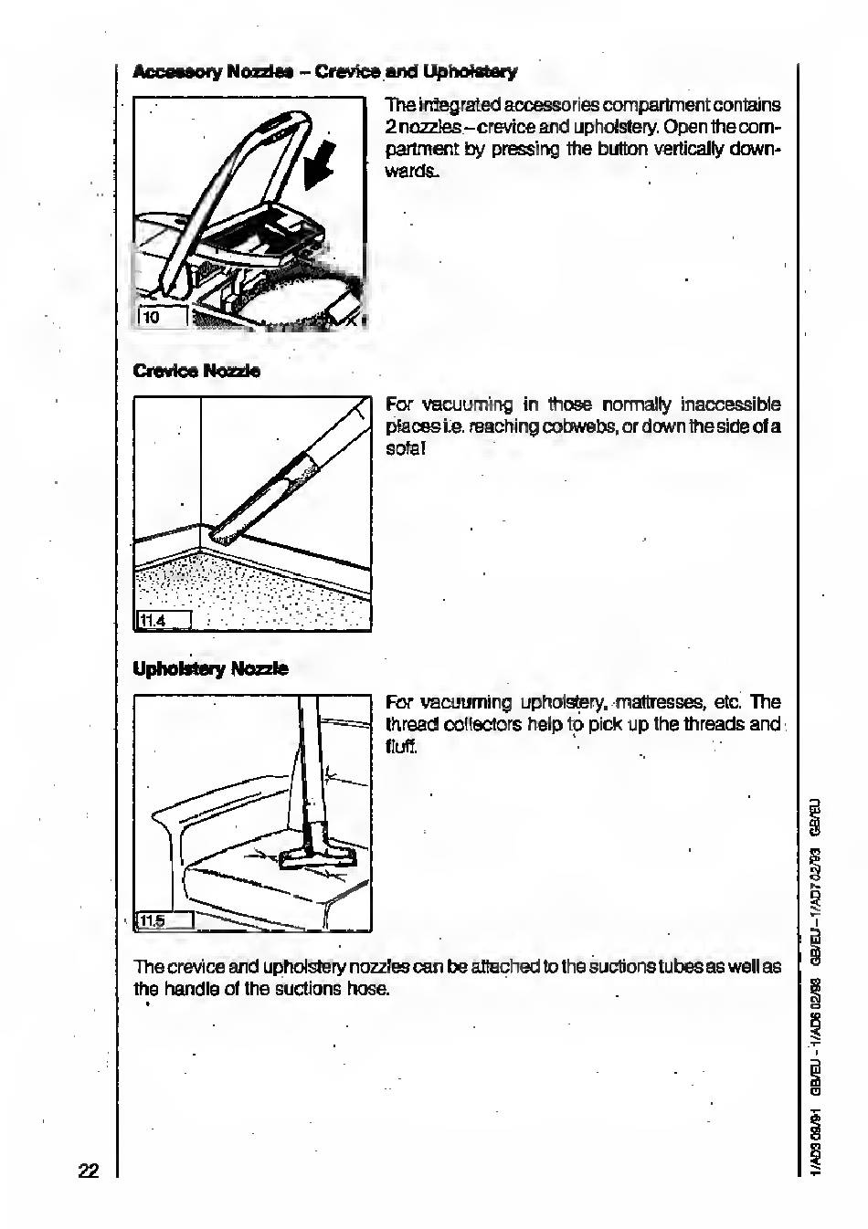 The crevice and upholstery nozzles can be attached to the suctions tubes as well as